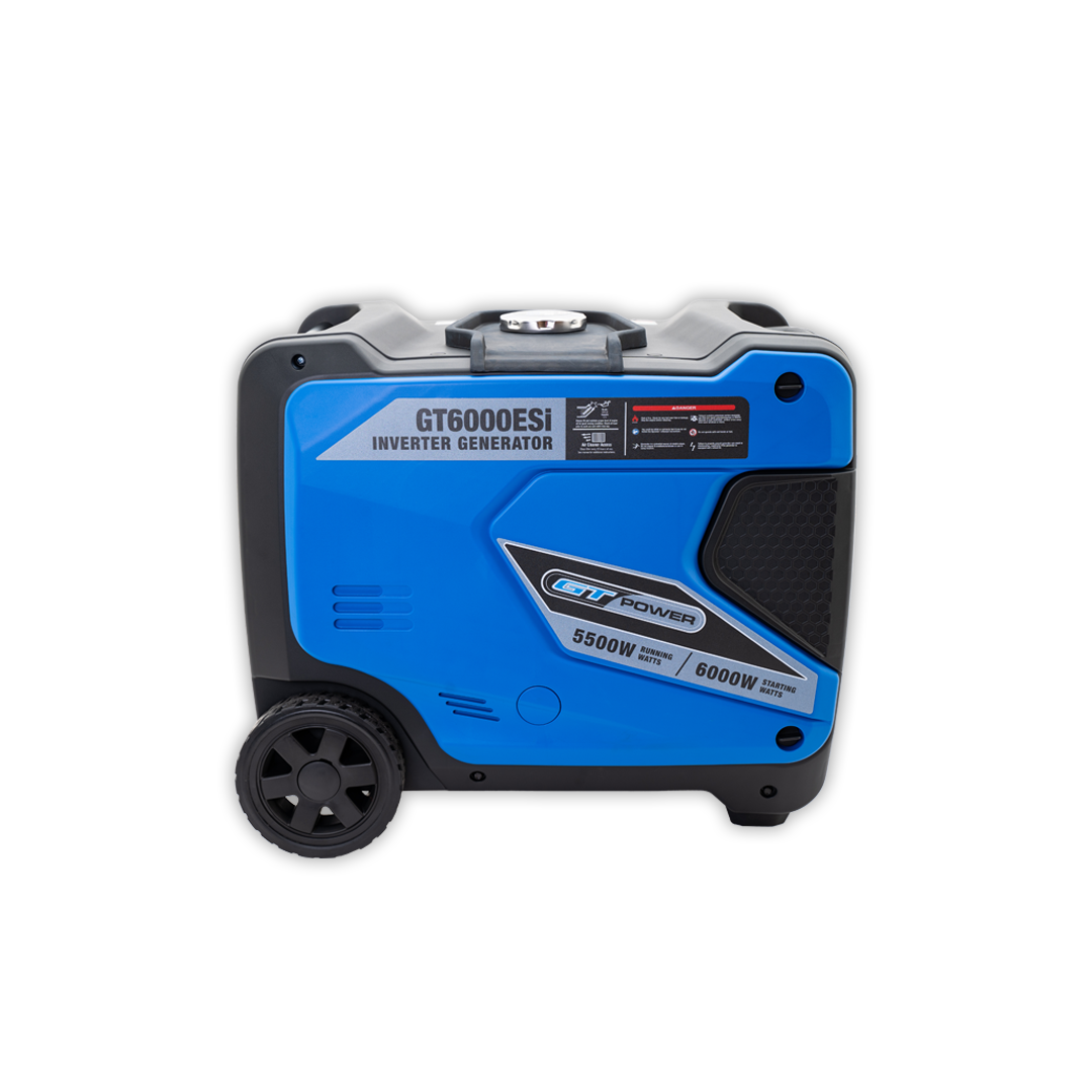 The GT Power GT6000ESi Electric Start Inverter Generator delivers 6,000 watts of portable, stable power, ideal for backup energy, outdoor activities, and off-grid use.