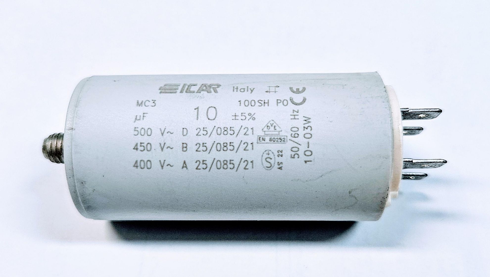 Motor run capacitors are resin filled with plastic case for light and economical design and have push on terminals for simple installation. Suitable for continuous operation in a wide range of applications with a temperature range from -25 to +85 degrees in 50/60Hz. Applications include pumps, electric motors, air conditioning.