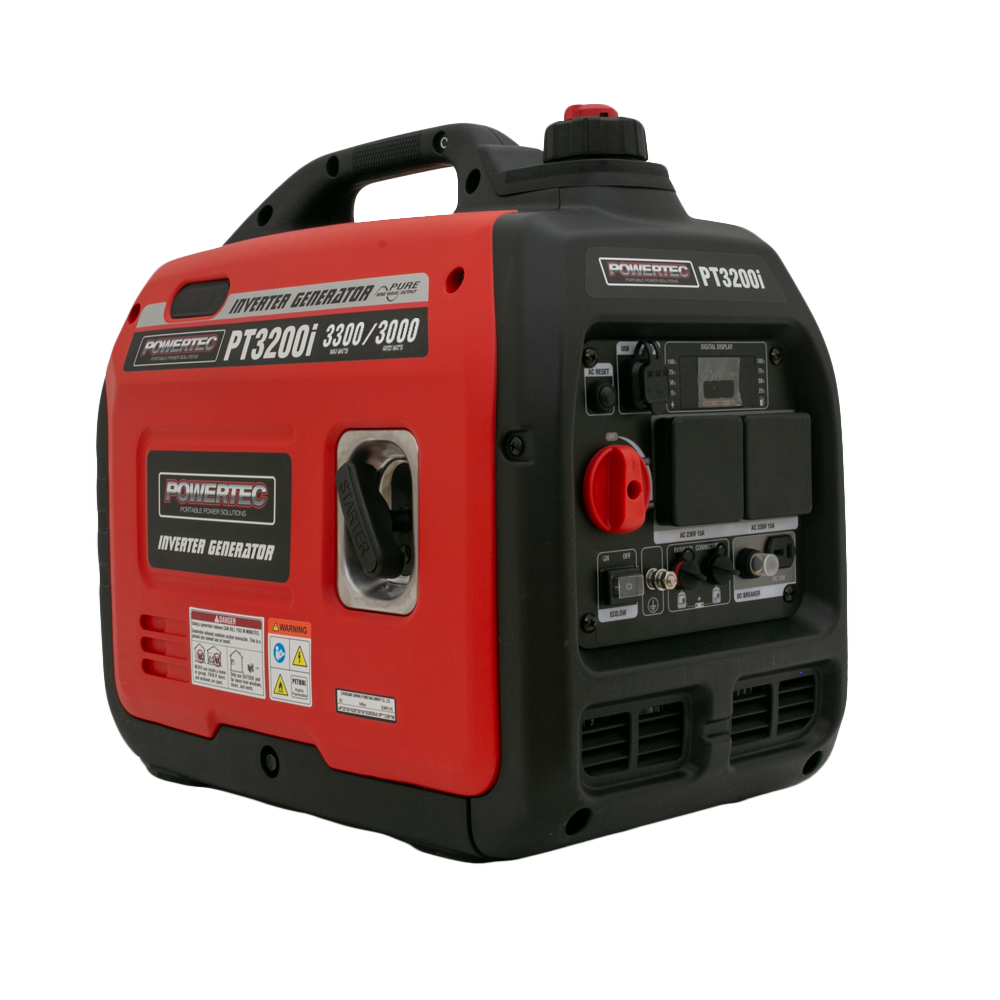 The Powertec PT3200i is a compact, whisper-quiet 3300W / 4.2kVA inverter generator designed to deliver dependable, clean power for home, camping, and recreational use. Whether you're powering a laptop, running a fridge, or keeping the lights on in a blackout, the PT3200i is the smart choice.